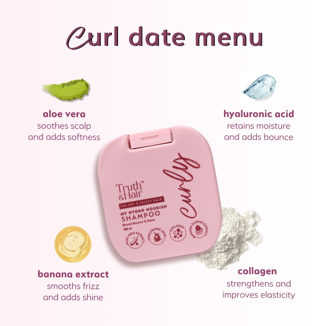 Meet our Hydro Nourish Shampoo for Curly Hair—a luxurious elixir designed exclusively to love your curls and tend them with care. The comforting touch of Marshmallow Root Extract and the creamy caress of Murumuru Seed Butter gently weave through each curl alongside the featherlight touch of Banana Flower extract that enhances shine and fortifies strands- a perfect orchestration of nature’s elements.