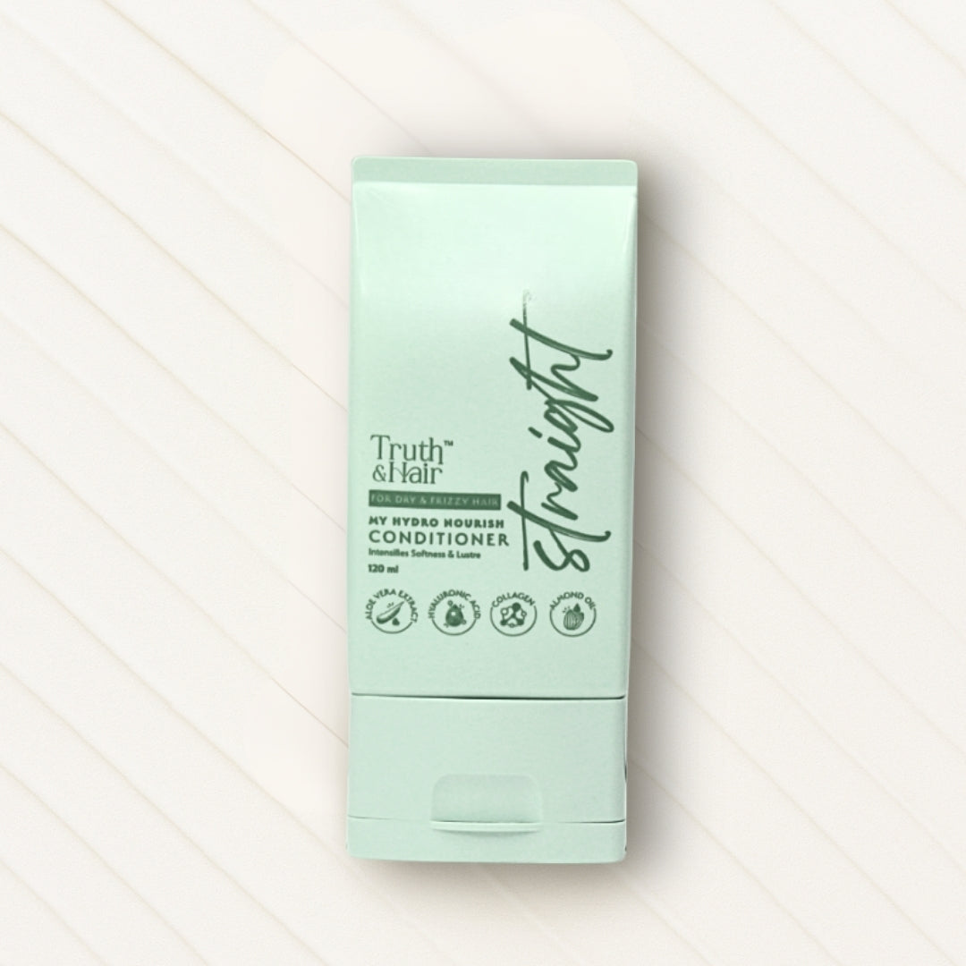 Meet our Hydro Nourish Conditioner for Straight Hair- a luxurious blend of Hyaluronic Acid and Hydrolyzed Collagen, a dynamic duo which quietly work behind the scenes to nurture your hair for the long haul! This lightweight clinically tested formula gently seeps into your hair, caressing each strand to smooth the cuticles. The ocean-inspired Pelvetia Canaliculata (brown seaweed) breathes life into your locks as they immerse in the hydrating touch of Aloe Vera. Experience the golden touch of Sweet Almond Oil and the nurturing benefits of Argan Oil- that will leave your hair soft, vibrant and radiant.