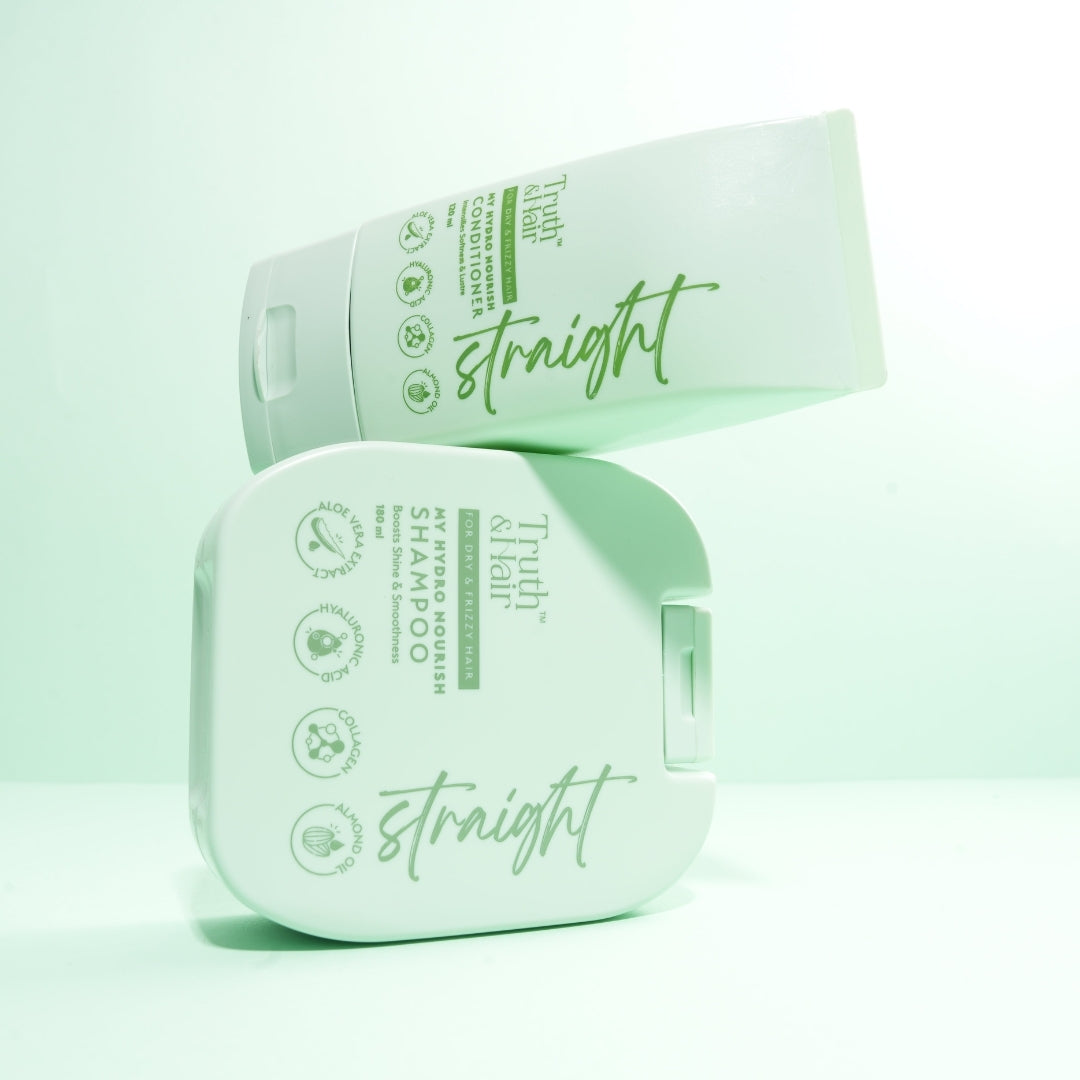 Conditioner - Meet our Hydro Nourish Conditioner for Straight Hair- a luxurious blend of Hyaluronic Acid and Hydrolyzed Collagen, a dynamic duo which quietly work behind the scenes to nurture your hair for the long haul! This lightweight clinically tested formula gently seeps into your hair, caressing each strand to smooth the cuticles. The ocean-inspired Pelvetia Canaliculata(brown seaweed) breathes life into your locks as they immerse in the hydrating touch of Aloe Vera. Experience the golden touch of Sweet Almond Oil and the nurturing benefits of Argan Oil- that will leave your hair soft, vibrant and radiant.
