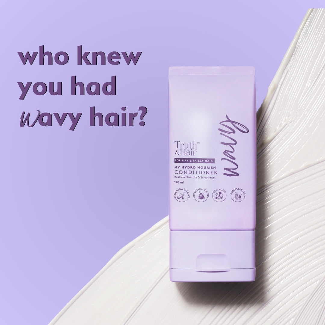 Meet our Hydro Nourish Conditioner for wavy hair- a formula whipped to caress your waves with nourishment. Envelop your locks in the light, comforting touch of Babassu Seed Oil and the buttery embrace of Murumuru Seed Butter. You will feel the softness bloom as Chia Seed and Aloe vera give your waves a hydrating hug and the sweet warmth of Argan Oil tenderly tends to your cuticles. The power duo- Hyaluronic Acid and Hydrolyzed Collagen will work their magic to restore elasticity and develop a lustrous shine that your hair can almost taste. As you breathe in the aromatic notes of Rosemary Oil, your waves will feel the strengthening touch of Rice Protein- you are now left with a promise of care and voluminous brilliance.